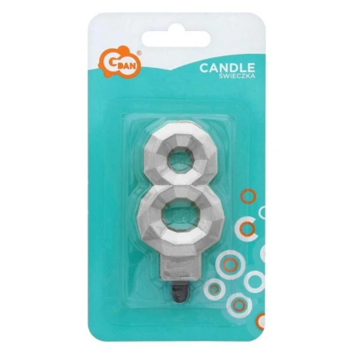 Ezüst 8-as Diamond Metallic számgyertya, tortagyertya