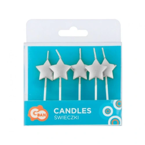 Ezüst csillag tortagyertya, gyertya szett 5 db-os