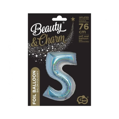 Ezüst Holographic 5-ös szám fólia lufi 76 cm