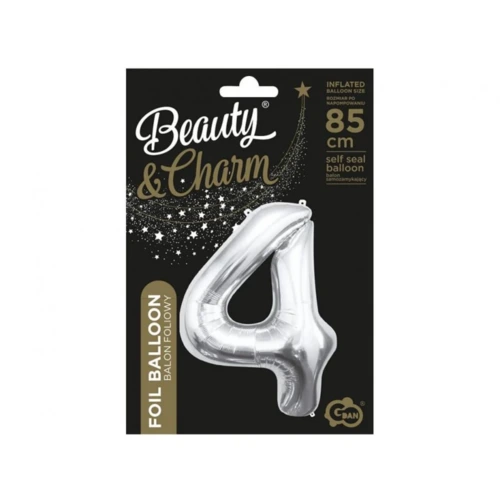 Silver, Ezüst 4-es szám fólia lufi 85 cm