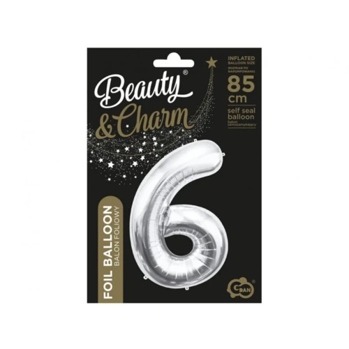 Silver, Ezüst 6-os szám fólia lufi 85 cm