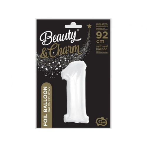Fehér B&C White 1-es szám fólia lufi 92 cm