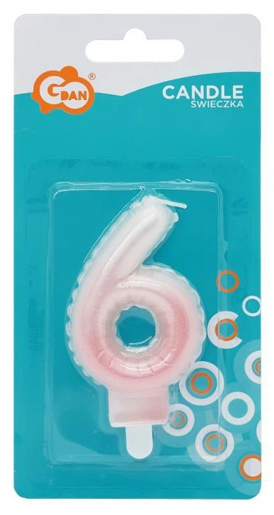 Fehér-Rózsaszín számgyertya, tortagyertya 6-os