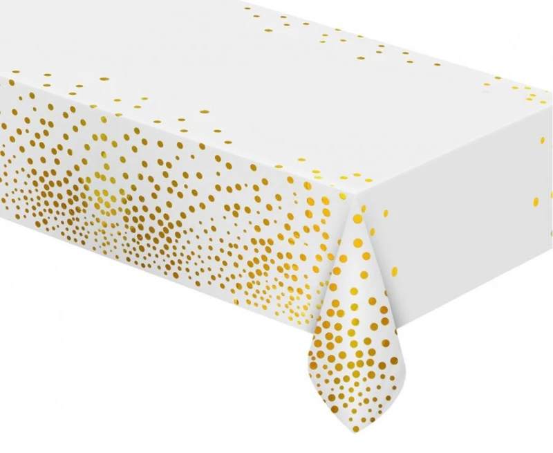 Fehér White Gold Dots fólia asztalterítő 137x183 cm