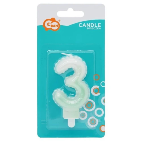 Fehér-Zöld 3-as Ombre számgyertya, tortagyertya