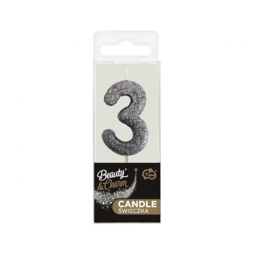 Fekete Glitter Black számgyertya, tortagyertya 3-as