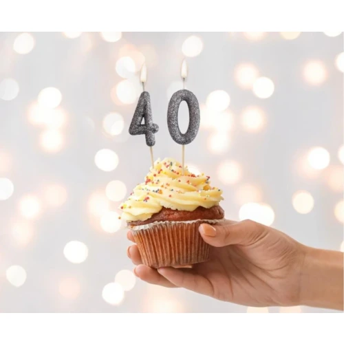 Glitter Black, Fekete számgyertya, tortagyertya 4-es