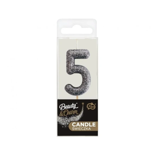 Fekete Glitter Black számgyertya, tortagyertya 5-ös