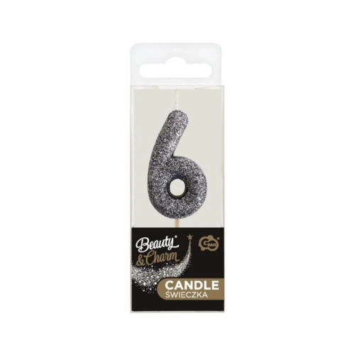 Glitter Black, Fekete számgyertya, tortagyertya 6-os