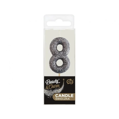 Glitter Black, Fekete számgyertya, tortagyertya 8-as