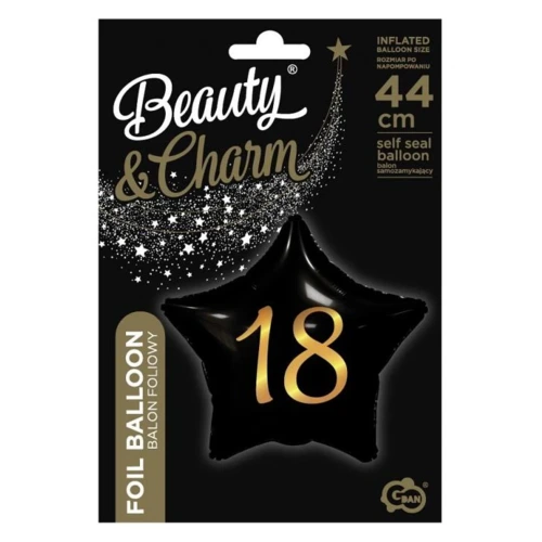 Happy Birthday Black, Fekete csillag 18 fólia lufi 44 cm