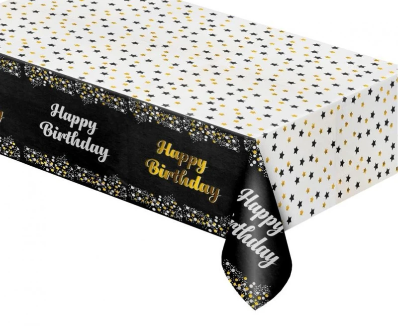 Fekete Happy Birthday B&C Black fólia asztalterítő 137x183 cm