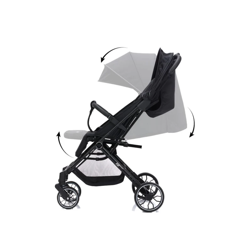 A forgó kerekek könnyedén legyőzik az összes felületet. Az állítható lábtartó és az állítható háttámla alkalmazkodik a gyermeked igényeihez. Ha gyermeked szundikálni szeretne út közben, a háttámlát fekvő helyzetbe, a lábtartót pedig felső helyzetbe állíthatod, így kényelmes fekvőfelületet hozol létre.
