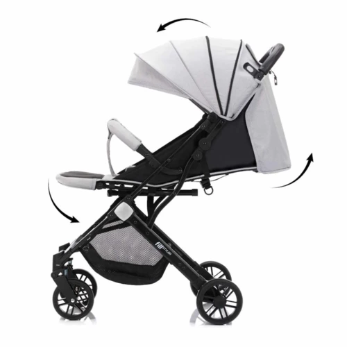 Felfüggesztésének és 360°-ban forgó kerekeinek köszönhetően minden felülettel könnyedén megbirkózik. A kétirányú állítható lábtartó és a fokozatmentesen állítható háttámla alkalmazkodik gyermeked igényeihez. Ha a kicsi egy séta közben szeretne szundikálni, a háttámlát fekvő helyzetbe állíthatod, a lábtartót pedig a legmagasabb állásba emelheted, így kényelmes fekvőfelületet biztosítva. A kihúzható kupola árnyékot és védelmet nyújt a nap és a szél ellen. A párnázott 5 pontos biztonsági övvel és a levehető első karfával mindig biztonságban vagytok útközben. Megállásoknál a könnyen használható rögzítőfék gondoskodik arról, hogy a babakocsi stabilan helyben maradjon. Ha a sportkocsit nem használod, egy kézzel gyorsan és egyszerûen összecsukható.