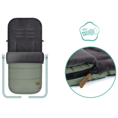 A lábzsák természetesen ülő és fekvő helyzetben is használható. Optimális biztonságot nyújtanak az övrések, amelyek lehetővé teszik, hogy a gyermek be legyen szíjazva a lábzsákkal együtt a babakocsiba. A puha belső anyag gondoskodik arról, hogy a baba ne fázzon. A cipzárnak köszönhetően a felső rész teljesen levehető, így az alsó rész használható babakocsi betétként, vagy akár pelenkázólapként vagy plédként leteríthető a baba alá vendégségben vagy útközben.