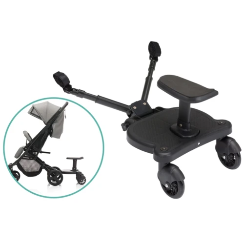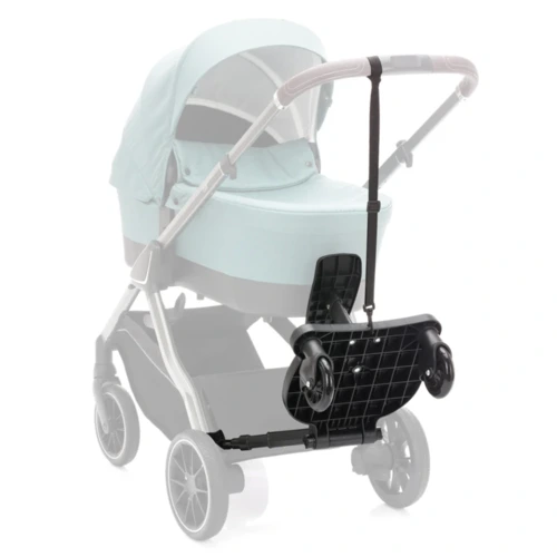 Ha a gyermeknek éppen nincs szüksége a testvérfellépőre, egyszerûen rögzítheti a babakocsi tolókarjához egy pánttal.