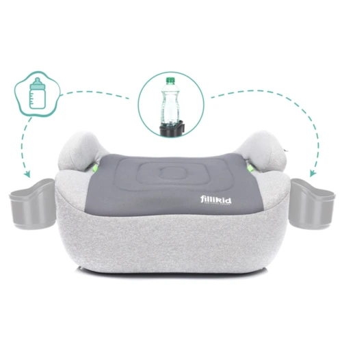 Fillikid ISOFIX i-Size ülésmagasító 125-150 cm magasságú gyermekek számára, ECE-R129 szabványnak megfelel, anatómiai kialakítású ülőfelülettel, italtartóval és levehető-mosható huzattal.