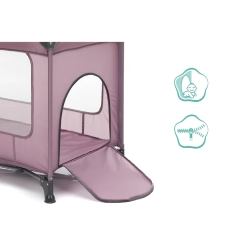 - Az utazóágy rövidebb oldalán lévő cipzárral nyíló kibúvón át a nagyobb gyerekek önállóan be- vagy kimászhatnak.