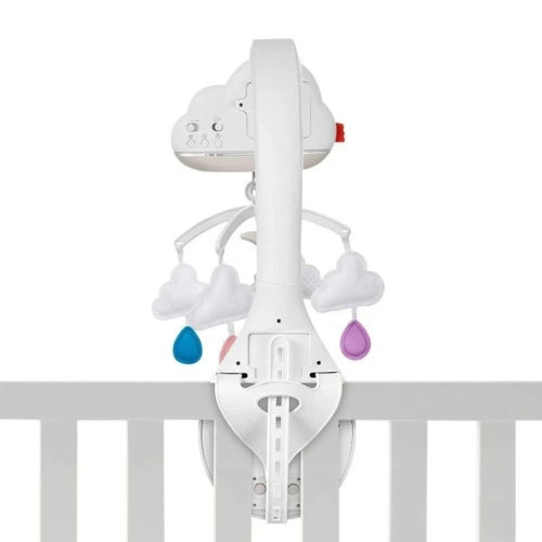 A Fisher-Price felhős kiságyforgó egyszerre megnyugtató és altató a babának és hasznos segítség a szülőknek, ami egészen a kisgyerekkorig segít megnyugtatni és elaltatni a csöppségeket. Az újszülöttek nézegethetik a színes forgó holdat, felhőket és cseppecskéket, a fényeket, miközben a kellemes (választható) zenei aláfestés elringatja őket. Az eszköz különlegessége a hangérzékelő, ami automatikusan újraindítja a forgást és a zenéket, ha a baba hangot ad ki. A megnyugtató zenék között könnyen meg lehet találni azt, amit a baba a legjobban szeret, és ami idővel emlékeztetni fogja, hogy alvásidő van. Ahogy pedig növekszik, a forgó részt levéve a vetítő az asztalra kerülhet, és továbbra is segítheti a lefekvés előtti rutint. A puha tapintású anyagok, fények és megnyugtató hangok fejlesztik a baba érzékeléseit. A puha anyagok tapintása és a lágy fények nyugtatóan hatnak és biztonságérzetet adnak. Újszülött kortól egészen 1 éves korig ajánlott. A kiságyforgó 3db AA elemmel mûködik, amelyet a csomagolás nem tartalmaz. Hangereje 2 fokozatban szabályozható.