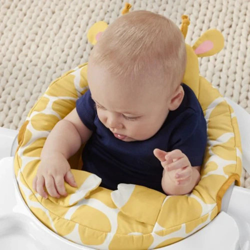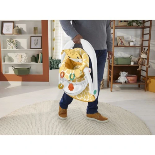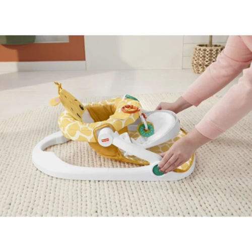 A Fisher-Price zsiráf mintájú etetőszékével nem lesz többé tortúra az ebéd- vagy a vacsoraidő! A praktikus, összecsukható etetőszék kényelmes és biztos támaszt nyújt az apró kezeknek és lábaknak, ha pedig vége az evésnek, a tálca eltávolítása után kezdődhet is a játék a dobozban rejlő 2 db csörgővel és rágókával. A puha, kényelmes párnák mosógépben tisztíthatók, az etetőszék összecsukott állapotban könnyen szállítható.