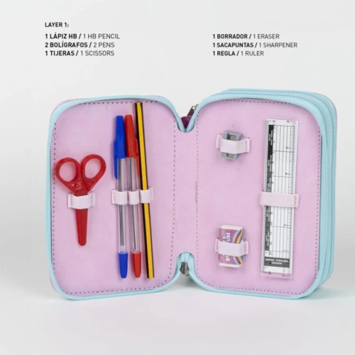 Tartalma: - 18 db színes ceruza - 18 db színes filctoll - 1 db grafit ceruza - 1 db hegyező - 1 db radír - 1 db kék toll - 1 db piros toll - 2 db vonalzó