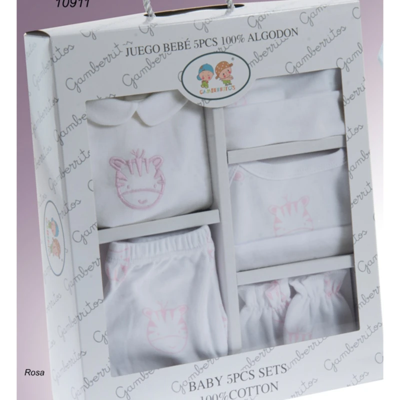 Gamberritos kiegészítő szett újszülötteknek 5 részes (sapka, kesztyû, nadrág, póló, előke) rózsaszín 10911