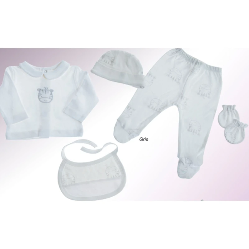 Gamberritos kiegészítő szett újszülötteknek 5 részes (sapka, kesztyû, nadrág, póló, előke) szürke 10911