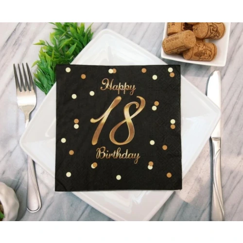 Happy Birthday 18 B&C Gold szalvéta 20 db-os 33x33 cm