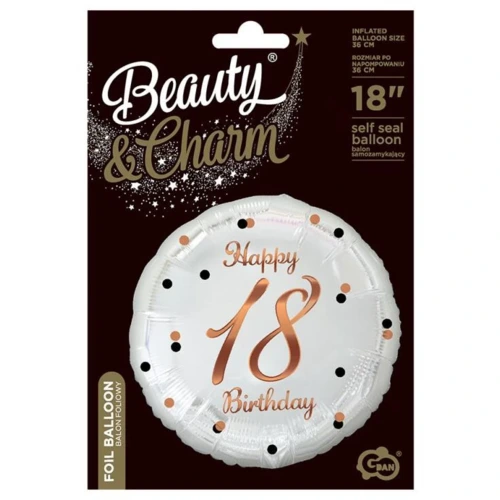 Happy Birthday 18 B&C White fólia lufi 36 cm