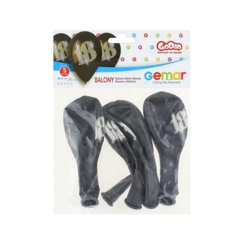 Happy Birthday 18 Black léggömb, lufi 5 db-os 12 inch (30 cm)