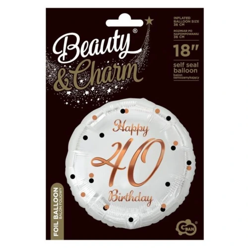 Happy Birthday 40 B&C White fólia lufi 36 cm
