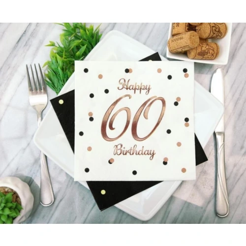 Happy Birthday 60 B&C White szalvéta 20 db-os 33x33 cm