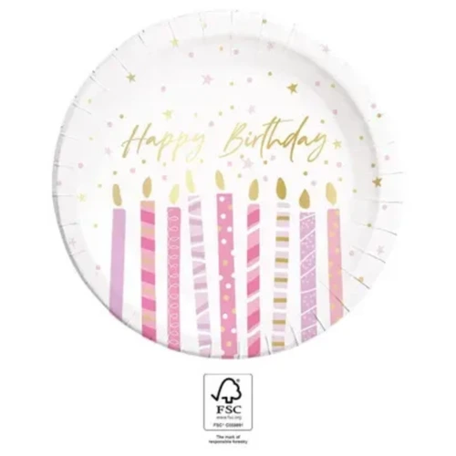 Happy Birthday Candles papírtányér 8 db-os 23 cm FSC
