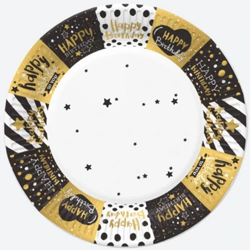 Happy Birthday Golden papírtányér 8 db-os 18 cm