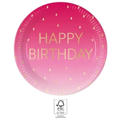 Happy Birthday Golden Pink papírtányér 8 db-os 23 cm FSC