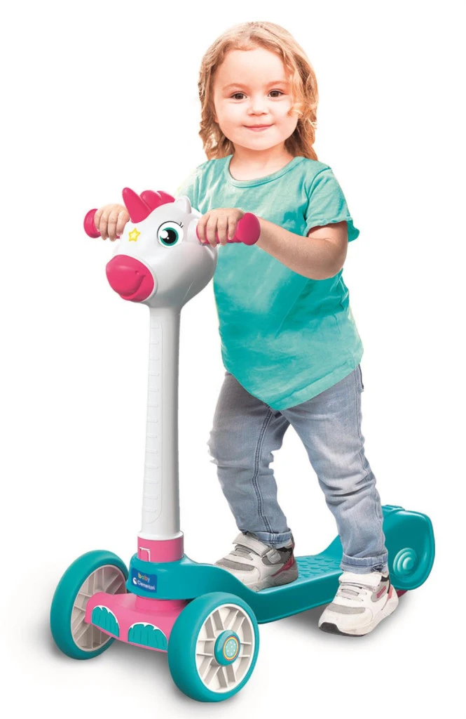 - szilárd ergonómikus szerkezet, a széles lábtartó és 3 erős, gumi futófelületű kerék stabillá, és biztonságossá teszi a rollert