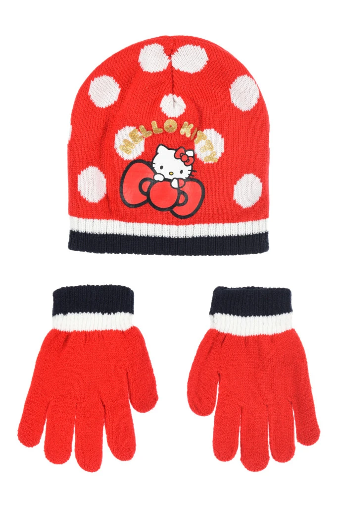 Hello Kitty Cute Dots Red gyerek sapka + kesztyű szett 54 cm