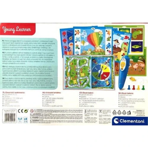 Tartalma: - interaktív toll (3 db elemmel működik) - matrica - 60 lap 120 játékos feladattal - 1 db útkereső játék - 1 db műanyag nyíl - 4 db bábu - útmutató a szülők számára - 3-6 éves korig ajánlott