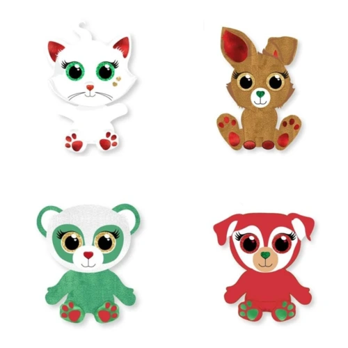 Karácsonyi plüss meglepetés figura 4 változatban (nyuszi, cica, panda és kutya)