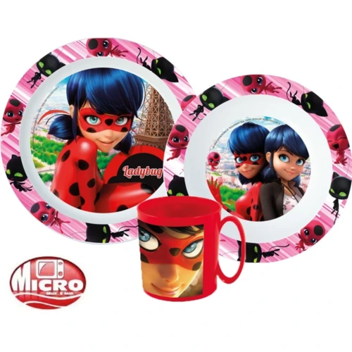 Katicabogár és Fekete macska kalandjai, Miraculous Ladybug Étkészlet, micro műanyag szett -BPA Mentes -Származási ország: Spanyolország -A termék környezetbarát, újrahasznosítható anyagból készült a Föld védelmében.