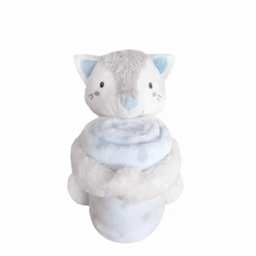 • Bolyhos ajándékkészlet babatakaróval és puha plüssjátékkal;