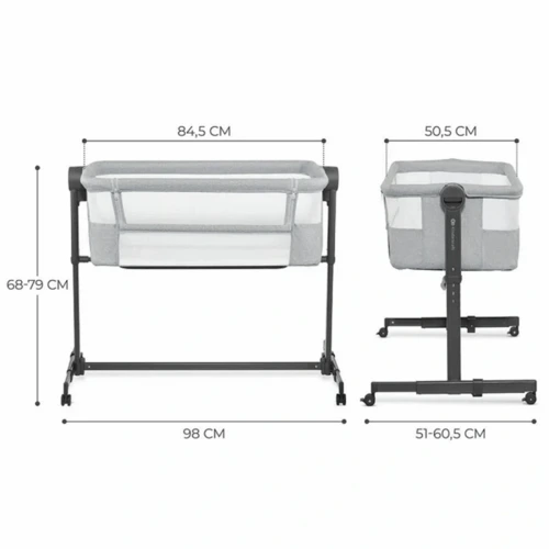A kiságy kényelmes és könnyen tisztítható anyagból készült. A divatos árnyalatok minden belső térhez illenek. A kiságy huzata gépben mosható.