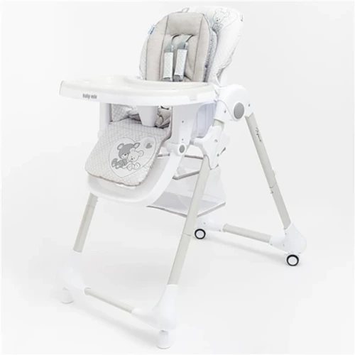 A mûbőrből készült puha burkolat biztosítja a kényelmet és könnyen tisztítható. 7 magassági fokozatba állítható az etetőszék, így könnyen beállítható a kívánt asztalmagassághoz. A háttámla 3 helyzetbe dönthető, így kisebb gyermekek számára is alkalmas.