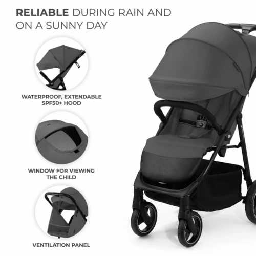 A TRIG 3 babakocsi nem csak mindennapi használatra, hanem kirándulásokra is tökéletes. Könnyen szállítható, könnyû kormányozni, és rendkívül könnyen manőverezhető, így ideális zsúfolt helyekre is. A TRIG 3 minden időjárási viszonyok között remekül használható – a kupola vízálló anyagból készült, és hátul egy kiegészítő szellőzőpanel található a forró napokra.