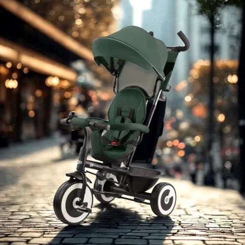 A hátsó kerekeken lévő fékekkel megállítható a tricikli úgy is, hogy a kicsi rajta ül. A kihajtható lábtámaszon tudnak a kis lábak pihenni, ha elfáradtak.