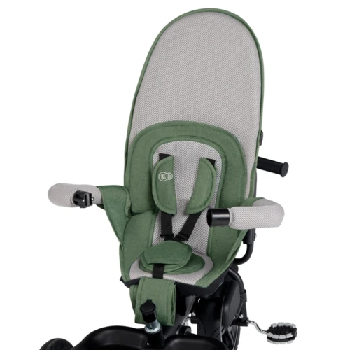 A tricikli 360 fokban forgatható üléssel rendelkezik, amelyet a szülővel szembe és menetiránynak megfelelően is beállíthatunk - a gyermek magabiztosabb lesz, ha tudja, hogy figyelsz rá. A mély, szabályozható, vízálló, és UPF50 szûrővel ellátott kupolának köszönhetően zápor és szél esetén is védelmet nyújt a gyermek számára, épp mint egy sportbabakocsi! A séta kényelméért a puha huzattal ellátott kényelmes ülés és a magas háttámla a felelős. A háttámla megfelelő támaszt nyújt a gyermeknek a világ felfedezése közben. A kistricikli 3 pontos biztonsági övvel és leszerelhető karfával lett ellátva, így ha gyermekünk készen áll, egyedüli utazásra is használhatja a triciklit.