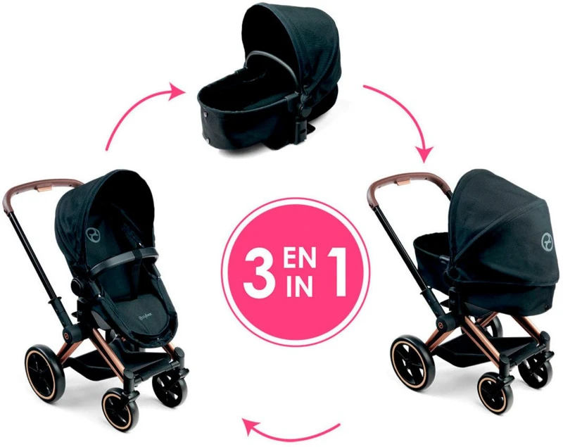 A kocsi tökéletes a babázáshoz, hiszen a gyermek háromféle módon használhatja. A prémium anyagokból készült kocsi négy halk keréken gurul, az első kerekek elforgathatók, így a babakocsit stabilan és könnyedén lehet irányítani. A mély babakocsiban lehajtható napellenző és tárolórekesz található, ahova a gyerekek elpakolhatják kedvenc játékaikat és babakiegészítőiket. A kocsi könnyen összecsukható és gyorsan átalakítható más pozícióba, ráadásul összecsukva szinte semennyi helyet sem foglal.