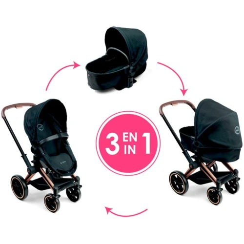 Kombinált babakocsi játékbabának Cybex Black Corolle összecsukható játékbabakocsi