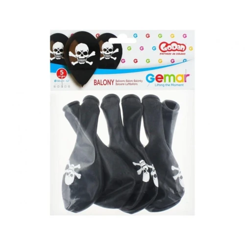 Koponya Black léggömb, lufi 5 db-os 12 inch (30 cm)