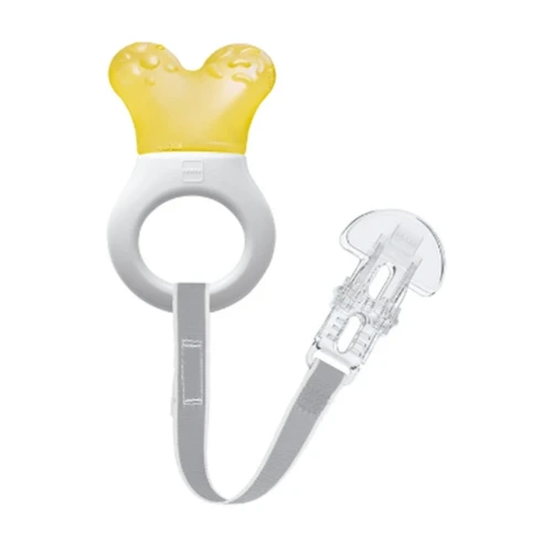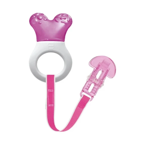 A strukturált felület és a hûthető rész megkönnyíti a fogzást, és a rágókát izgalmassá teszi a baba számára.